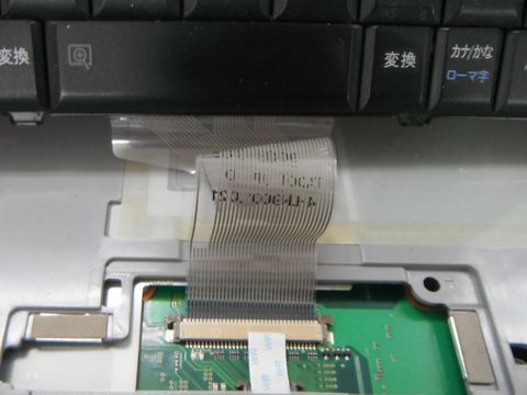 すると、キーボードを固定しているネジが見えるので、これを外すと、キーボードを手前に裏返すことができる。後は、フレキ・ケーブルを固定しているカバーを外して、フレキをコネクタから外せば、キーボードを交換することができる。