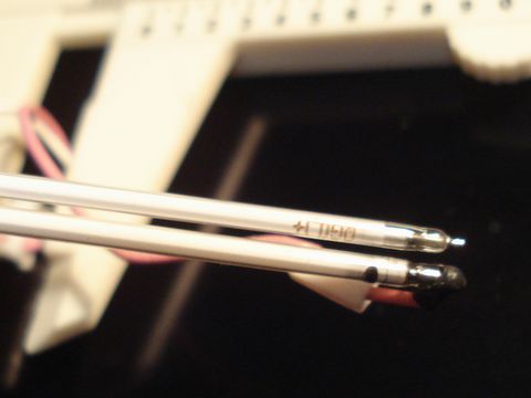 ※取り出したCCFL(下)と新品のCCFL(上)。