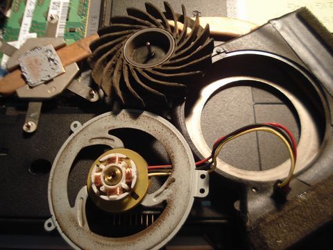 CPUファンを外してみると、ほとんどシリコングリスが効いていない状態に見えた。これは、グリスの塗り直しで対応することとしよう。