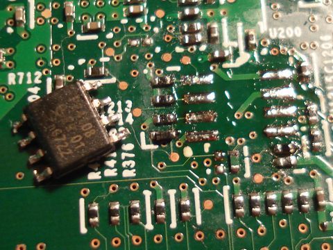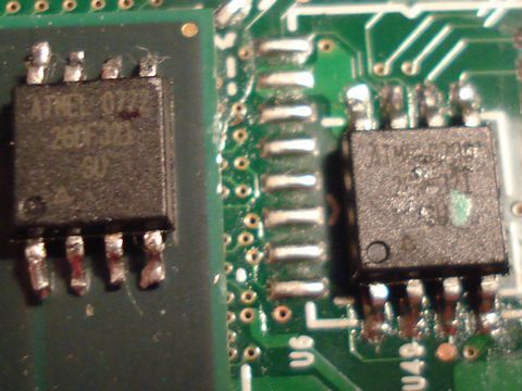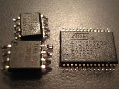 現状は、起動はするものの「192エラー」が出てしまい先に進めない状態。これをeeprom、BIOSチップ、セキュリティーチップと順次交換して、復活を目論む。 交換する3つのチップは以前不動のT61(7663-A56)より処分前に取り外したもの。eeprom「NPX P24S08」。BIOSチップ「ATMEL 26DF321」、セキュリティーチップ「ATMEL AT97SC3203」。