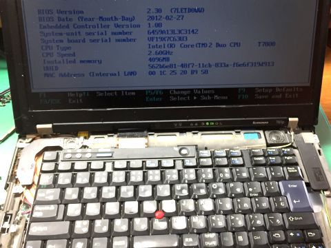 HDDをスペアのT61p(6459-A31)に移して、早速、問題発生のT61pの修理に取り組むことにした。
