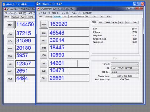 ここまで来るのにかなり出費も多かったので、そのスペックは気になるところだ。ベンチマークソフト「Crystal Mark」を使って試してみた。比較するのは、Core i5-2520Mを搭載したT420s(4172-A28)。