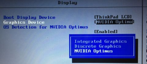 ※T420sのBIOS設定。どのグラフィックデバイスを使用するか設定できる。