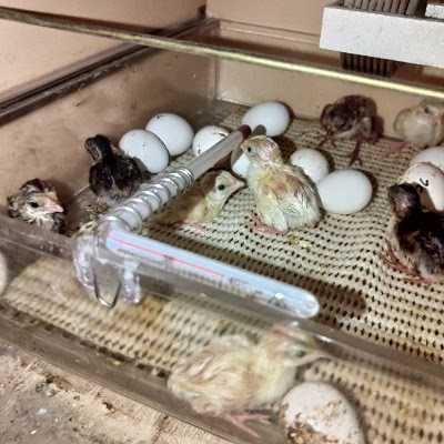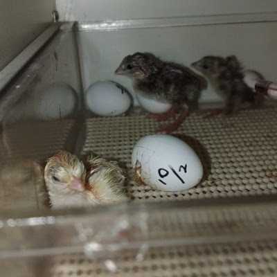 土曜日から、並ウズラの孵化が始まりました40個中27個が有精卵、転卵ストップ時に2個が中止孵化したのは15羽でしたが、この寒さの中大満足な孵化です輸送にもめげず、これだけ孵化してくれたら~ o(^-^)oジャンボの並ウズラなので、家の孵化した子よりメタボ同時孵化の予定だったコジュケイが、3日遅れて孵化しましたもうダメか~で、諦めていたのですが、、、どこからかデカイ声がしてて、まさか孵化してたとは~ (^0^;)平和なグループの並ウズラなので、子の中に入れました先生から学んでくれたら良いけど・・・コジュケイの卵は3個たまっていたので、昨日入卵6日前に入卵してるボブと同時孵化になります 大丈夫かな?外の鳩達は、又産卵してます 続けて産んでますが孵化しません私のイスに産卵してるんだけど、色からして鳩ですよね?鳩子はここでは絶対産まないだろうし、まさか鳩美が♀???♂1羽だけで、他は5羽♀のようですぐーだら主婦おだっこ☆FC2 ←こちらの方が読みやすいかも.....
