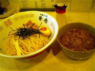 時々雨が降る中、ゴルフに行ってきました。 フリーでのラウンドのため朝早くに家を出て、ゴルフ場に7:30ごろ到着。駐車場に知り合いの車があったので、一緒の組に入れてもらった。もうひとりは時々お会いする方、おしゃべりがいつも絶好調な人です。もうひとりは、初めてラウンドする方です。 スコアは散々でしたが、強い雨に降られず、適度に涼しくていいゴルフでした。 昼ごろに終わったので、さて昼飯はどこに~? 仕事関係の用事で豊明市に行ったので、以前伺った「華壱」に決定! 注文したのは、つけそば。 デジカメを忘れてしまったので携帯で撮りましたが、美味しそうに撮れませんでした。 冷たい麺をあったかいつけ汁につけて口の中に流し込むと、魚系の出汁と動物系の脂が麺に絡んで美味しかった。 今度は夏季限定の、冷やしそばにしよう!