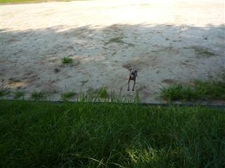 雨の合間の晴れた日、いつもとは違う散歩コースに行った杏。 近くにある神社です。車の入れる所まではペットokだし、あまり沢山の人と会わないので、怖がりの杏にはちょうどいい散歩コースです。 新緑がキレイで、マイナスイオンたっぷり!といった感じ。 知らない場所だとしり込みしてしまう杏ですが、ここは何回か来てるので早速ふんふんを開始。 直線コースもあるので、monzaburo-の姿をチェックしつつも、走っちゃいます。 わーい♪ でも、monzaburo-が見えなくなると慌てて戻ってくる杏。 そんな忠犬杏に満足したmonzaburo-。 よし!帰るか。