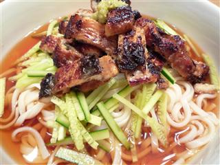 昨日は夜の会議のため、休肝日のはずでした。 anzuはそのつもりで、休肝日メニュー。鰻のコロうどん 讃岐うどんと国産??鰻、結構つゆが美味しい・・・・。自家製?ってきいたら・・・・・・、市販物。そっか・・・・・。やな雰囲気・・・・・・・・・・・・・・・。 でも蒸し暑い夜なのに背筋を冷たくしながら、美味しくいただきいざ会議へ! 「行ってきま~す!」 「ただいま」疲れた。ビールを1本空ける。なんか眠いような気が・・・・。 と思いつつ、ワインを持ち出し飲み始める。明日の朝が心配・・・・・・。 おやすみなさい。