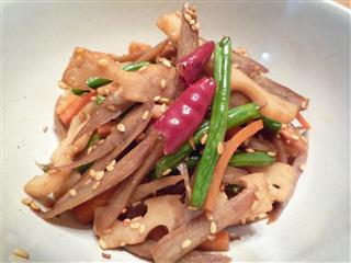 一昨日、昨日と夜まで仕事を手伝いました。一昨日は休肝日だったので簡単メニューで大丈夫でしたが、昨日はそんな訳にはいきますん。昼の間に下拵えと一品をつくっておきました。 きんぴら牛蒡・蓮根・にんじん・さやいんげんでつくりました。唐辛子をきかせてピリ唐です。 大根の鶏そぼろあんかけくまっち♪さんのブログで美味しそうだったので、まねっこ。ちょうどいただいた大根が沢山あったので、中くらいもの1本全部使いましたが完食。昼から下茹でして、煮ておいたので大根に味がしみてとろとろで美味しかったくまっち♪さん、ありがとうございました。 あじの蒲焼梅風味最初、フライにしようと買ったあじ。衣をつけて下拵えしておくのは・・・と悩んで、蒲焼にしました。以前日本酒の会の時に出した、梅ダレが好評だったので、今回もその梅ダレを作ってからめました。天盛りにした紫蘇もいい感じ 飲んだワインはシャルドネ セントラル・コースト 2007 カレラ ロッソ・ディ・モンタルチーノ 2003 ロナリッキオ・ディ・ソプラ シャルドネは、あじにも鶏そぼろあんにもよく合いました。 赤を飲んでいるとき、頂きもののチョコレートがあることを思い出したmonzaburo-がガサゴソ出してきました。美味しかったぁ