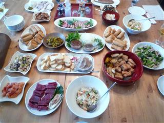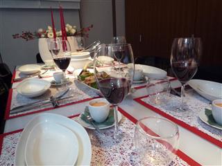 今月はお料理教室の月でした。年間5回の教室で、今年はこれで最後です。 赤を効果的に使ったクリスマスを思わせるテーブルコーディネイト。 今回はイタリアンでした。 ホモス(ひよこ豆のペースト) 焼き茄子のサラダ 取り分けるとこんな感じ 赤ピーマンとトマトのムースなめらかで、トマトの酸味赤ピーマンの甘みが濃くて、美味しかったです。 炊飯器で作るパルミジアーノリゾット きのこの香り簡単なのに、本格的なお味。 豚肉の蒸し焼き・マッシュルームソース ぶどうのスキアチャータぶどうが瑞々しくてデザートのよう。 かぼちゃプリン キャラメルソース 今回はフードプロセッサーを多用したメニューでした。下拵えが短時間ですむので、おもてなしのときにいいと思いました。 ただ、盛り付けのセンスやテーブルコーディネイトで、家では全然別物になりそうですが・・・。