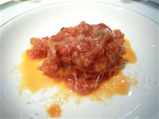 木曜日、『美輪明宏 音楽会 〈愛〉 2008』に行ってきました。毎年、2回、演劇と音楽会があるのですが、友人に席を取ってもらえていい席で楽しむことが出来ます。今回から愛知県芸術劇場・大ホールに舞台をうつしましたが、5列目のほぼ真ん中といういい席!やはり生で聴く迫力はちがいます。「愛の賛歌」を目の前で聴き、感動しました。 その後は友人と2人でディナーへ。時間も10時と遅くなっていましたが、食いしん坊な私たちは食べる気まんまん。予定していたお店がオーダーストップの時間を過ぎてしまったので残念ながら変更・・。最近オープンの「リストランテ アルピーノ」に行く事に。 アラカルトで色々頼みました。 トリッパの煮込み 魚介のフリット盛り合わせ 完熟トマトのパスタ バジリコ風味 仔豚のラグー 金目鯛のアクアパッツァ ワインは「料理に合わせてグラスワイン3種類」というものを頼みました。10種類ほどのグラスワインの中からお店の方が選んで出してくださるらしいのです。 1種類づつ説明しながらサービスしていただけました。もう少し飲みたい気持ちもありましたが、お腹はいっぱい。デザートも断って帰ることに。 お店を出ると雨!慌ててタクシーに乗りこんで帰途につきました。