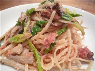 今日、我が家で昼から日本酒の会。 朝からanzuは、バタバタ慌ただしい。 なので昨夜の家めし記事も、monzaburo-が書くことに・・・。 昨日anzuは料理教室だったので、夕食時になってもまだお腹が空いていない様子。monzaburo-が仕事を終えて帰っても、まだ夕食を作っていない。少々不安になりanzuに、「今日は何?」と聞いたら、「パスタ」と一言。 とりあえずワインを用意して待つことしばし、でてきたのは・・・。 我が家の定番パスタ 明太子・葱・牛蒡・椎茸パスタはベネデット・カヴァリエーリなので、食感が楽しめました。 豚肉ソテー マスタードソースマスタードソースは、バターとしょう油そしてマスタードから作ったらしい。マスタード風味が、豚肉に合っていましたね。実家で採れたルッコラはこれで最後らしい。たっぷり盛り付けられていました。 お腹いっぱい、と言いながらanzuは横からアレコレつまんで食べていた。結局は食べるくせに・・・。 用意したワインは、今日届いた IGT ウンブリア・ビアンコ2007 ポッジョ・ディ・サリーチスイスイ飲める、デイリーワイン。 ロッソ・ディ・モンタルチーノ2003 カナリッキオ・ディ・ソプラ酸はとがっていますが、果実味がいいですね。 テレビでスケートを観ながら楽しんでいると、参加したがりの杏が首を長~くしながら、何かもらえるのを待っていました。 さて、もらえたでしょうか?