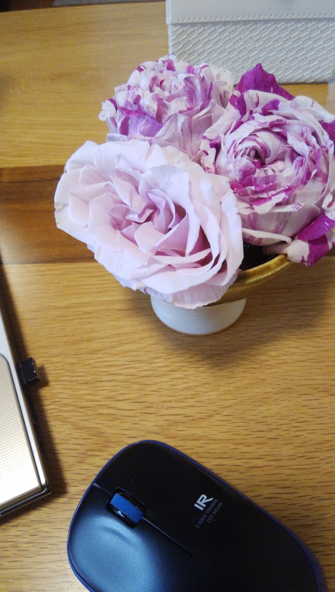 我が家のバラも咲き始めましたでも天候が悪く雨でやられております切り花向きでないのでこんな感じで香りを楽しんでおります良い香りです