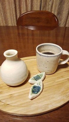 書いた日記が消えてしまったようで・・・・一輪挿しと箸置きが焼きあがってました箸置きは????どうやら釉薬が厚かったのかしら?一輪挿しは白土に乳白の釉薬でまずまずでしたマグカップは先生のセールのお品ですさすがです、インスタントコーヒーでも一味違います今日は、カップアンドソーサーのカップの方を作りました今回は色合いをグレーにするので黒土2:並土7を混ぜ合わせますそれぞれ細かくちぎり、交互に重ねて伸ばしよく練ります10月の教室で削りと持ち手を作ります気の長いことです夕方スーパーのついでに書店へ併設の雑貨店を覗くとヒノキのまな板がちょうど買い替えたかったところでした