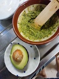 収穫していたバジルをやっと食べることにバジルをみじん切りニンニク塩唐辛子少々そして、今日はアボカドを半分アボカドは電子レンジにかけると色が変色しないそうですすり鉢ですりすりオリーブオイルを加えますゆでたパスタとあえれば出来上がり~口の中がバジルの風味でいっぱいになります