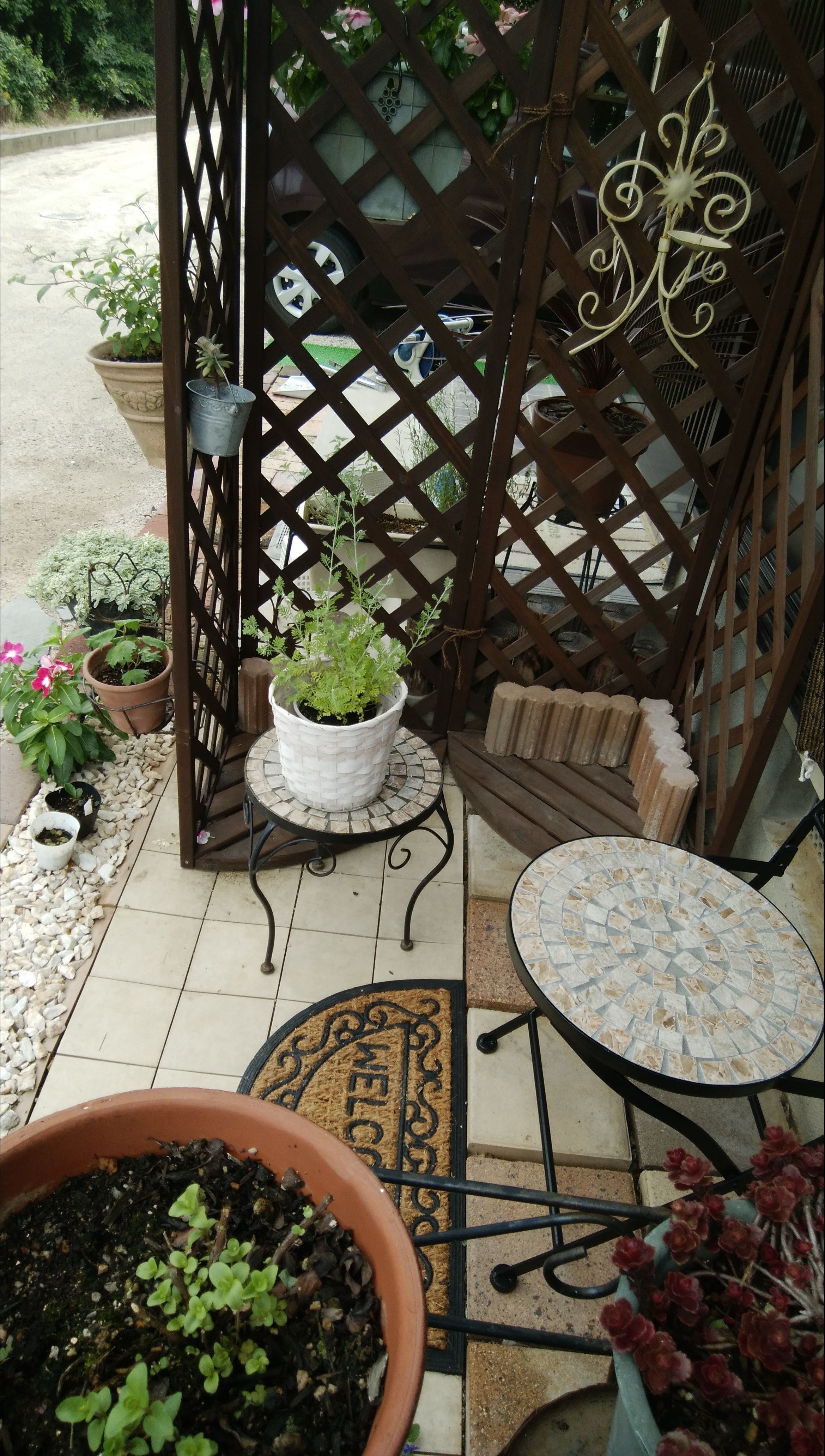 センスは今いちだけど 玄関横に腰かけて植物を眺めるスペースを作りましたガーデニングブックの様にはなかなか・・・・で、座って↓もちろん蚊取り線香をたかなければ大変ですこちらを眺めて、こうしよう、ああしようとしばし思案したりして・・・・思うようにいかないものだとぼんやり