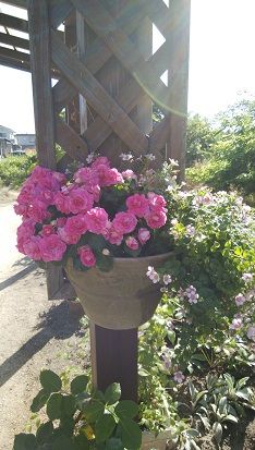 やっと前々から考えていた花壇を広げる案が実現し毎週日曜日にボチボチやってますが、しかしやり過ぎると翌日の仕事に差し支えてしまいます先々週も月曜日に体調を崩し午後から早退という失態!次の週は午前1時間半 午後1時間と休み々・・・・体力が~バラのゲートにレンガを敷いてみたり、今ひとつなので仮敷ですが・・・・秋バラは管理が悪く咲きそうにないですね~来年ですねちなみにゲートの奥は空き地です、森のように見えますがお向かいに家がないのは良いかもです今年は、なんだか渋い色合いの寄せ植えに心惹かれます日日草藍染絞りゆうぎり草ウンシニア ルブラ(茶色の雑草のような)これから成長して賑やかになる予定ですこの写真ではわかりずらいですね