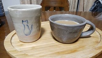やっと初めて作った湯飲みと小鉢が焼き上がった教室の展覧会と重なったので焼いてもらうのが先延ばしになっていたんですよねぇ4か月、待ちました~それだけにうれしかった~↓こちら 湯飲みは大きめなので、フリーカップとしてコーヒーを入れて飲んだりしてます教室の後お友達と一緒に教室の近くの蔵カフェ マルマスへ蔵の作りを生かしたとてもオシャレな内装残念ながら、限定ランチはこの日はお休みでした食事メニューはカレーのみちょい辛ですが、美味しかったです珈琲の種類はたくさんあったけど時間がなかったのでまた今度ですしかしお客さん、私達しかおらんかったな・・・・