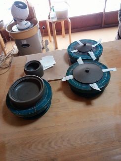 本日は7月の陶芸教室でしたコロナの影響で4月はお休みでしたが毎月1回は、頑張って通っておりますもともと2時間2、3人くらいの生徒で構成されているのでソーシャルディスタンスは以前からばっちりですね蓋を開けたら こんな感じになります冷蔵庫に収納しやすいサイズですちなみに、奥の小さく見えますが(マグサイズ)カップは、思い描いた灰色を目指して割合を考えた土づくりをしましたが、もう少し明るめが良かったかな~まだまだ修行が足りませんね・・・・今日は、直径12センチの小鉢を2個作りました覚書: 出来上がり10パーセントプラスして作る 12㎝プラス1.2㎝ で13.2㎝で作ります