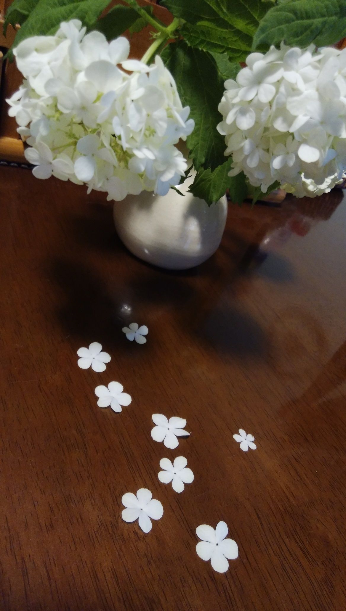 スーパーで買ったお花ですがアナベルだと思っていたらビバーナム ホワイトボールという低木のお花のようです花弁が紙で切った花形のようです庭に欲しいと思ったけど2メートル~5メートルくらいになるらしいので無理かな・・・