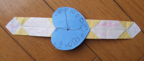 またまた続けますね。今日は“プレゼントを作ろう”です。子どもって人に喜んでもらうのが大好きですよね。え! お宅のお子さんはそんなことないですか。悪さばかりしていますか。でも、それはどうしたら相手が喜んでくれるのかを子どもが知らないだけなんですよ。子どもが一生懸命に相手を喜ばそうとしても、相手がそれに気付かず喜んでくれなければ子どもはどうしていいのか分からなくなってしまいます。そして、悪さをして気を惹こうとします。自分に気付いて欲しいからです。とにかく、子どもは忘れられるのが一番怖いのです。でも、子どもだって、喜んでもらって認めれる方が、叱られるよりずっといいのです。それはちょっと実験してみればすぐ分かります。子どものちょっとした行動に、ちょっと大げさ目に“ありがとう”、“うれしいわー”と言ってみて下さい。それをしばらく続けていたら、子どものイタズラが激減すると思いますよ。悪さをする必要がなくなってしまうからです。また、子どもと一緒に誰かさんのためにプレゼントを作って下さい。お父さんでも、お友達でも、お世話になっている人でも、先生でも、自分が大好きな人のためにプレゼントを作るのです。どんなものをプレゼントしたら相手が喜ぶのかを子どもと一緒に考えて下さい。そういうことをお母さんと一緒に考えていると子どもは生き生きして元気になりますよ。つまり、子どもを直接喜ばそうとするより、子どもと一緒に他の人を喜ばそうとすると子どもも喜ぶのです。不思議ですよね。そういう子どもの姿を見ていると、子どもって神様に近いんだなと思います。下の写真は、教室の子どもからのプレゼントです。一番下のものは今日もらったものです。来た時から何か持ってそわそわしているので、プレゼントだなと気づきました。女の子からですよ。いくつになってもプレゼントは嬉しいものです。そうそう、大事なことを書き忘れるところでした。私の絵だそうです。まあるいのはカラーのボールです。「ポランの広場」という親子遊び教室では最初ボールで遊んでいますから。