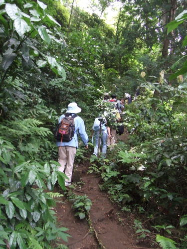 今日は「冒険クラブ」で鎌倉の天園コースを歩いてきました。登りは北鎌倉の明月院の近くから登りました。“がけ”と聞いていたのですが、大したことありませんでした。冒険クラブのメンバーは木を見ればみんな登ります。通りすがりの親切なおじさんが“危ないよ”と注意してくれました。でも、私は“子どもの時に木登りしないでいつするんだ”と思っているので、笑って黙って聞き流しました。だって「安全クラブ」ではなく、「冒険クラブ」ですからね。また、歩き始めの頃小さな子がお花を摘んでいたら、“花を摘んじゃいけないんだぞ”などとぶつくさ言いながら通り過ぎる人もいましたが、山を崩し、田んぼを埋め、自動車を走らせる大人が、ほんの数本の花を手折る(たおる)子どもをとがめることは出来ないんじゃないか? とこれも聞き流しました。私の子どもの頃の鎌倉にはこんなに家もなく、山は山のままでした。私は、ここも山だった、ここも山だったということを覚えています。こんなにも自然を少なくしてしまったのは大人の責任です。だから、大人に子どもが自然と関わる機会を奪う権利はないのです。自然との楽しい関わりが、子どもの心の中に自然とつながるものがたりを生み出し、自然を大切にする心を育てるのです。人間は“物”を大切にするのではないのです。“物にまつわるものがたり”を大切にするのです。だから、結果として物を大切にするのです。この山にはいっぱい生命がいるんだ、あの木で木登りしたんだ、このがけを登ったんだという想い出とものがたりがいっぱいあるから、その自然を大切にするのです。かたくなな自然保護活動をやっている人は子どもを自然から遠ざけるばかりです。そう言う人たちが管理している公園に行くと、“入るな”、“触るな”、“捕るな”という立て看板がいっぱい立っています。でも、自然と関わらないまま成長した子どもは、平気で山を崩す大人になってしまうのではないかと心配なのです。お猿です。岩を見れば登ります。穴を見れば入ります。桑の木を見つければ群がって食べます。これも桑の木。桑の木を見つけるたびに大騒ぎをして、おとなも子どもも群がって食べていました。でも、他のグループの人たちは誰も手を出しません。「冒険クラブ」とは、こういう大人と子どもの集まりです。これも「桑の木」。素敵な渓流がありました。水が湧いているところがあり、そこから流れが始まり、次第に川になっていくそのままを歩きながら体験することが出来ました。小さい子が多く、最初はどうなるかと思いましたが大丈夫でした。子どもは山道が大好きです。お母さんやお父さんがおんぶしようとしようとしても、みんな歩きたがっていました。気持ちの良い、一日でした。