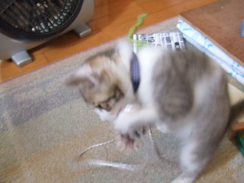 今日2729さんAma-laさんしんしんままさんぐりぐりさん有り難うございます。今日はちょだけ、でもすごく大切なことを付け加えるだけにします。そして、お約束の新しく家族になったネコの写真をご披露します。つまり、昨日パソコンが直って帰ってきたと言うことです。一安心です。でも、2週間近く別のパソコンを使っていたのでデータを統合したり、通信を書く作業が中断してしまっていたので大変です。(能力が低く新しいソフトをインストールできないのです。)ということでまず付け加えることです。昨日のブログに対して牧野さんが非常にうまくまとめてくださいました。まず、それをご紹介します。レベル1:生理的な優しさ(必要なものはない)レベル2:道徳的な優しさ(体験が必要)レベル3:宗教的・普遍的な優しさ(自立した精神が必要)レベル4:直接に自然や宇宙や神とつながった優しさ(悟りが必要)こういうことです。 子猫を可愛いと感じるだけではレベル1の生理的な優しさです。でも、その子猫のために色々考え行動する時、レベル2になります。レベル2の優しさは「行為」によって特徴づけられるのです。ですから、社会的な評価が大切なポイントになります。そのため、道徳的な行為が中心になるわけです。みんなと仲良くしたい、犯罪のない平和な社会を作りたいと行動するのもこのレベルです。さらには、「優しいお母さんと思われたい」というのも同じです。学校の道徳教育が目指しているのもこの優しさです。それに対して、レベル3の優しさは「優しくありたいと願い、祈り、行動する意志」の中に存在しています。つまり、この場合の「優しい人」とは「優しくなろうと努力している人」のことです。ですから、「私は優しい人だ」などという人の優しさは見かけだけです。また、その人が過去にどういうことをしてきたのかということとも関係ありません。どんなに立派なことをしてきていてもこの優しさとは関係ありません。過去に人を殺してしまった人でも、この優しさに目覚める人はいるのです。つまり、非常に精神的なものなのです。だからこそ普遍性を持つのです。この優しさの人は社会の常識に振り回されません。戦争中にみんなが戦争は善だと叫んでいる時でも「これは間違っている」と言えます。また、周囲のお母さんになんと思われても自分が正しいと思ったことを守ろうとします。つまり、レベル2から3の間に価値観がひっくり返るのです。これが、親鸞が言った「善人なおもて往生をとぐ、いわんや悪人をや」という言葉になります。ということで、子どもに普遍的な優しさを育ててもらいたいと願うならまず、美しいものを喜び、優しさにあこがれる気持ちを育てることです。「優しくしなさい!」と怒鳴っても、ただ厳しくしても無駄です。優しい人がいるわけではないのです。優しくなろうと努力している人が優しい人なんです。***********************ぼくの名前は「はっち」です。「みなしごハッチ」のハッチではありません。どうやら「はちべいさん」の「はっち」らしいです。ということで正式には「はちべい」、通称は「はっち」ということのようです。以後、よろしくお願いします。はっち、ヒモと戯れる。はっち、みあげる。はっち、私のからだに登る。登ってくる時に爪を立てるので傷だらけです。