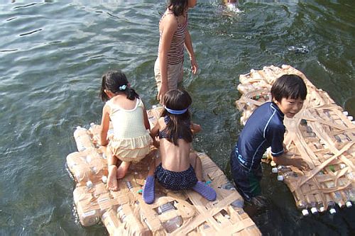 まず最初に、ちょっと楽しい写真を。土・日と親子遊びの会で、道志村にキャンプに行きました。テーマは、「イカダを作ろう」です。ペットボトルでイカダを作って、みんなで遊びました。以下はその時の写真です。流しソーメンもやりました。竹ではなく、牛乳パックを使っています。子どもたちが猛烈な勢いで食べたので、大人の分がちょっと物足りなかったかな・・・。***************************イジメを語る時、よく言われるのが“昔からイジメはあった”という話しです。でも、昔のイジメと、今のイジメは大分様相が違うように感じます。昔のイジメは、“いじめっ子”が“イジメられっ子”をいじめていました。この両者の関係は固定していて、立場が入れ替わるなんてことあり得ませんでした。また、さらに見て見ぬ振りをする子もいましたが、止める子もいました。そして、イジメを止めたからと言って、その子がいじめられることもありませんでした。また、いじめられている子を排除するなんてこともなく、みんなで一緒に遊んでいました。そして、大抵の場合“いじめっ子”は誰が見ても分かるタイプの子でした。そしてみんなが避けていました。少なくともわたしの周りには、成績が良くて、先生に評判がいいいじめっ子なんていなかったのです。そういうように考えてみると、クラスに多様性があったのです。一人一人が自分の個性で生きていました。自分の個性で生きていても居場所があったのです。でも、今の子どもたちのイジメの話しを聞いても、そこに一人一人の個性は見えてきません。いじめていた子が、ある日急にいじめられる側になり、無関心だった子が急にいじめる側、いじめられる側に回ったりします。そこでは、一人一人がカードゲームのカードのようです。人間としての個性が見えません。むしろ、今の子どもたちはその個性を出さないように気を配っているようです。個性を出すと目立ってしまいます。目立ってしまうといじめられてしまいます。そんな子どもたちの状態を見聞きしていると、多様性に対する恐れのようなものを感じてしまうのです。実際、遊びでも何でも、ちょっと複雑になると尻込みしてしまいます。遊びでも、4人以上になるとどうしたらいいのか分かりません。(子どもたちが大勢でも遊べるのはスポーツも含めて走り回る遊びだけです。)政治家は、“個性を大事にし過ぎたせいで子どもたちが身勝手になった”などと言いますが、実際には子どもたちの個性はどんどん見えなくなってしまっています。個性そのものがなくなったとは言いませんが、その個性に自信を持つことが出来ないのです。だから無理をしてみんなに合わせて個性を消そうとして、そして苦しんでいるのです。それは大人でも同じです。これが個性が大切にされてきた結果なのでしょうか。本当に個性が大切にされてきたのでしょうか。学校では、金子みすずの詩を引用して“みんな違って みんないい”などと子どもたちに言っていますが、先生達も、他の大人たちもそんなこと全然信じていません。そうでなかったら子ども同士を競争させるなどということはしないはずですから。実際、先生達も、大人たちも子どもの個性も、そして自分の個性も大切にしようなどとはしていません。ただ、どうやって人より上に上がることが出来るのか、そればっかりです。私は、それは社会全体から“多様であっていいんだ”、という価値観が消えてしまっているからなのではないかと思っています。個性を大切にする社会は多様性も大切にする社会でないと明らかに矛盾です。多様性のない社会で個性が存在できるわけがないからです。むしろ、多様性を支えるために個性が必要なんです。だから個性は大切なんです。“みんなちがって みんな いい”などというレベルの問題ではなく、一人一人が違うから、社会が多様性に満ちて調和するのです。