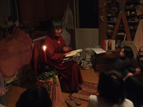 今日は、私が主宰している「詩とお話しで遊ぶ会」のお話し会兼、忘年会兼、クリスマス会でした。我が家で、大畑真由美先生をお呼びしてのお料理とお話しの一品持ちよりの会です。参加者一人一人に、お話しを語ってもらったり、絵本を読んでもらったり、ピアノを演奏してもらったりして楽しい時間を過ごしました。最後に大畑先生が語ってくれた「雪女」が圧巻でした。あの雪女を聞くことが出来ただけで、今日の会を主催して良かったと思ったほどです。以下はその時の写真です。皆さん手作りのお料理も美味しかったです。総勢26名、ちょっと窮屈でしたけど・・・。