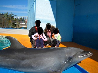 今日はちょっとビーチランドまで行ってきました。一人入園料+1000円かかりますが、「家族でふれあいタイム」に申し込んでいたのです。(要・電話予約)その成果は・・・・まず、バンドゥイルカと家族写真を撮り、ふれあいタイム♪そして、アザラシと触れ合ってから、一人一匹のえさをあげます。次は再びショースタジアムで、アシカとタッチして、家族写真!最後はペンギンと家族写真を撮ってから、事前説明ではタッチできないという話だったのですが、タッチできることに!ゆっくりタッチしたり、家族写真も 写りが悪かったら撮り直しできたり、ビデオ撮影もできたし、ほんとに1000円分しっかり楽しんできました。この「家族でふれあいタイム」(40人限定)は 来週の日曜もやっているみたいです。電話予約が必要ですので、興味がある方はぜひ行ってみてくださいねー事前予約なしのイベントにも時間がずれていたので参加できましたよ。そこでも 時間は短いけど いるかとタッチしたり、ペンギンにえさをあげたり、アシカとタッチしたり、アザラシとタッチできました。また、セイウチとも家族写真を撮ることができたのですが・・・・セイウチってでっかいねー;しかも、ぺたってくっつきすぎて、不思議な物体になってしまいました;また、一日20組限定 一組4人までで500円でいるかと家族写真申し込むことができるようです。これは、先着順とのこと。いるかだけでいいなら これでもいいですね。ただ、予約できない・・・お正月イベントだったらしいのですが、好評につき延長中。いつまでかは微妙らしいです。(冬の間だけ?)興味ある方は、問い合わせた方がいいかもしれません。さてさて、なぜに愛・地球博なのかというと、帰りがてら、セントレアにまた寄ってみました。そんなわけで、写真UP!他にも、天むすやさんでモリコロと写真を撮ったり、お気に入りのお店 スタディールームで遊んだりしてきました。それはまたあとで!
