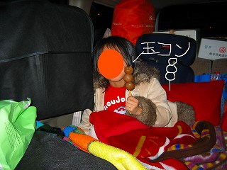 帰ってきましたよ。夕方4時過ぎに出て 夜中3時前着。海老名サービスエリアでご飯を食べたワリには結構早い♪ぱぱさん、おつかれー!!(ホンノ一部; 私が運転)さて、宮城県をぬけて福島県に入ったところで(国見(くにみ)SA付近)やな感じの灰色の低い雲が前方に立ち込めています。福島のあたりになるのですが、どんどん雪が降り始め・・・そこで、ピカピカと雲全体が光ります。雷?? とおもったら、なんと雪の中の花火大会でした。雪雲のせいでぼやけて なんか幻想的でしたよ。ではとりあえず ねまーす おやすみなさい