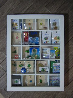 掘り出し物?(多分)見つけました。3600円⇒半額!!確かに汚れや傷があるけど、気にならないし♪と購入してきたものに、いそいそとセッティング。しかーし、思ったより入りませんでした。また 掘り出し物を探しにいくしかないかな・・・ これは、壁に飾ることもできるようですよ。さて、今日の新聞に モリコロの催しが載っているらしいのですが、まだ取りに行っていないのです。(マンションの郵便受けにしか届けてくれない・・・うるうる)あとで 更新しまーす