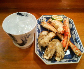 焼酎グラスとタラバガニ