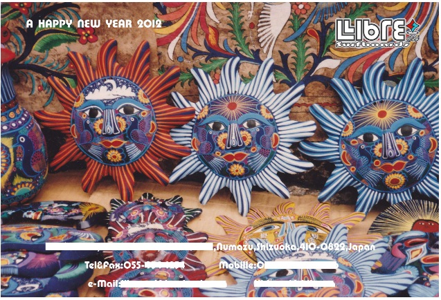 明けましておめでとう!昨年はいろいろとありましたが今年は、良い年でありますように。えーっと、じつはサーフショップの店長に年賀状を頼まれましてこの場でお披露目してみます。店長が海外サーフトリップ行っていた際に撮影したものだそうです。ちなみに、昨年のはこんな感じですよぉ~!