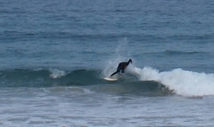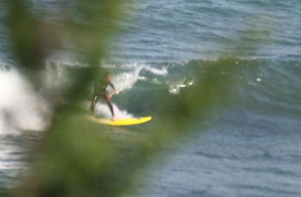 今日は静岡最終日、サイズは小さい予報でしたがサーフしに行きました。下の写真は近くのシークレットPoint.知り合いのK村さん。ちょっと木が邪魔しちゃいましたが、遠方より目一杯ズームでパチリ。白浜神社前はピーク2,3箇所あって波サイズ:セット腰~腹風 :サイドPM4から日没まで、小さいながらも数は乗れました。水温もだいぶ上がってきて、5mmフルだと、動いてると腰の辺りが暑い状態でした。一緒に行った Libre のIさんは3mmフルに衣替えで、ちょうど良かったらしい。これでしばらく、伊豆とはお別れです。今からロングドライブして山形へ帰ります。.