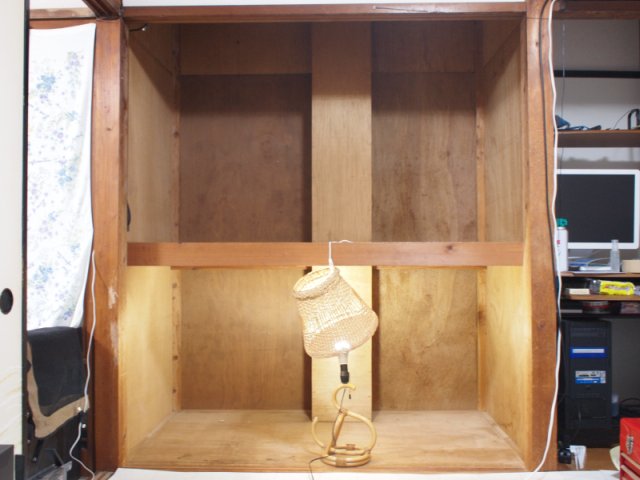 だいぶ放置してしまいました。今日は、リビングの押入れの改造を紹介します。まず、施工前見ようによっては、押入れが出っ張っている感じに見えます。(右横に引っ込んだ部分があるため)手始めにリビングに施した壁紙と同じものを押入れの中にも貼ります。これだけでも、一気にリビングに馴染みますね。次は、照明を設置します。エコになるようにLED電球とし、一箇所で全てのLEDをコントロールできるようにスイッチはまとめます。回路図はこんな感じちょっと紫っぽい感じにしたいのでLEDは各段3個両サイドが青、中央が赤としました。点灯させると、こんな感じです。使ったLEDは省エネLED電球LDG1B-G-G252 LED装飾電球 ミニボールG40形 E26 青色 ELPA(エルパ・朝日電機) LED電球LEDを使った小丸球です。【4971275408906】【04-0890】LL-07R E26 6LED小丸球 E26赤 LL-07R OHM(オーム電機) LED電球そんで、最終的には本棚を設置してみました。本棚の奥行きは、押入れ内の鉄骨カバーの出っ張りの幅に合わせました。木板はパイン材とし、木の質感が見えるよう、あえて塗装はせず、そのままとしました。