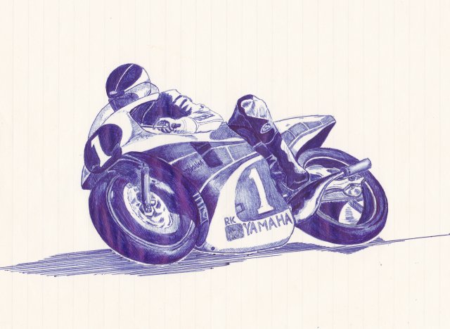 ブラシじゃないのですが昔から、たまにバイクのイラストを描いていたんです。これは、中学の時に描いた初めてのボールペン画一番最初だけあって、さすがに雑ですね!っていうか、この時は描けた事自体に自分自身びっくりんで、直ぐに2作目ノートに描いてますね。少しだけ精密になってきましたが、なんか全体のバランスが変ですね。勢いで3作目、んー!?どうなんでしょ って感じかなぁ。この後、そういえばカラーを含め何作か描きました。で、最後が、これっ!精密すぎて、スキャナーがついてこないっす!実はこれ、未完成だったりします。もう、今となっちゃ、手つけれないなぁ。。