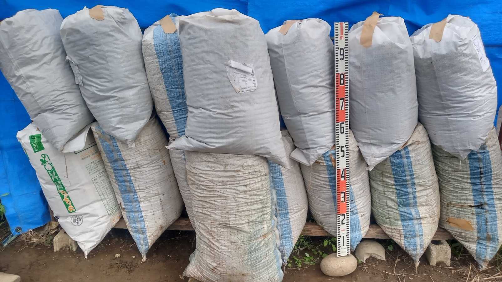 私は、50㎝位の袋に詰め、車で畑まで運び保存しています