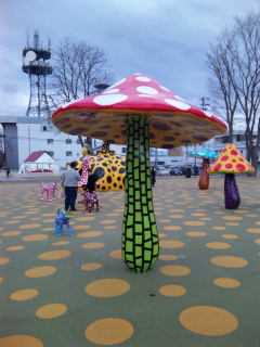 ちょうど「草間彌生 十和田でうたう」展をやっていて、外にもこのような”インスタレーションが。