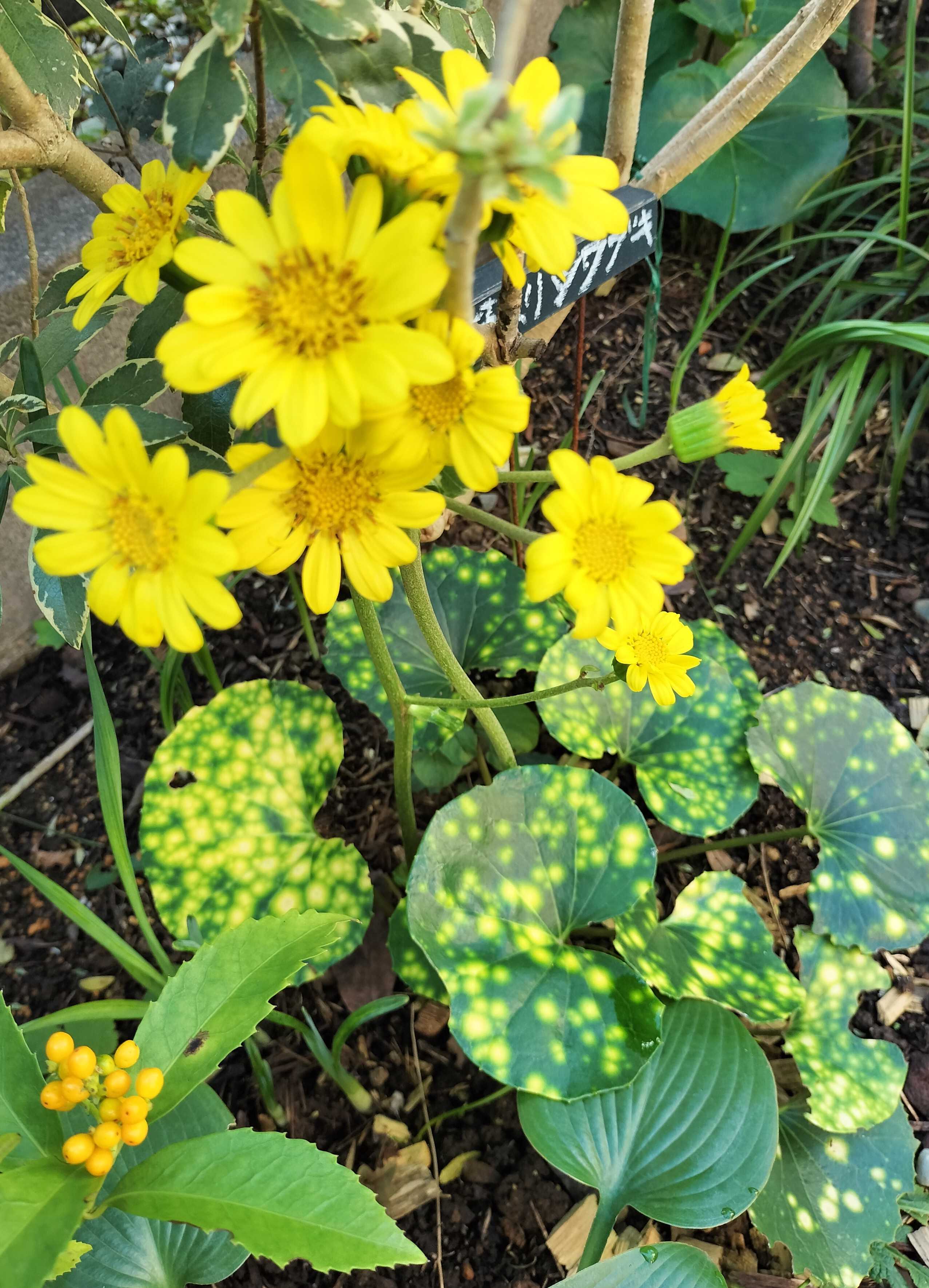 山野草の苗/ツワブキ:青軸天星(アオジクテンボシ)5号鉢植え