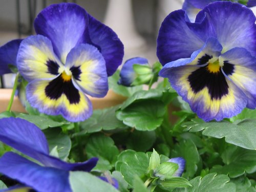 ♪パンジー パンジー 三色スミレ ウ~ゥ~ 三色スミレ~♪誰が歌っていたのか、覚えていない。女の人達だった、とは思うけど。いつ聴いたのか、何で聴いたのか、覚えていない。小学生の頃だったか 中学生になっていたのか、白黒テレビで見たのか ラジオで聴いたのか、記憶はあやふや。あの歌を聴いた時からずっと三色スミレにあこがれていて、いつか自分で育ててみたいと思っていたっけ。黄色、紫、白だけだった三色スミレも、今は何色あるのだろう。20年以上前に、予約して買った水色一色のパンジーを植えたことがある。あのときの感激は 今はない。それでもパンジーは大好きな花。毎年、必ず植えて楽しむ。< パンジー >