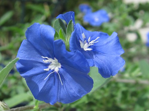 何年も、初夏になるとアメリカンブルーをたくさん植えてきた。だけど 去年は1株だけ。去年のグンバイムシの被害に懲りて、思いきって減らしてみた。何が良かったのかわからないけど、今年のアメリカンブルーはとても元気。毎朝たくさん花が咲く。暑い日でも そこだけ涼しい風が吹いているような 青い花。< アメリカンブルー >