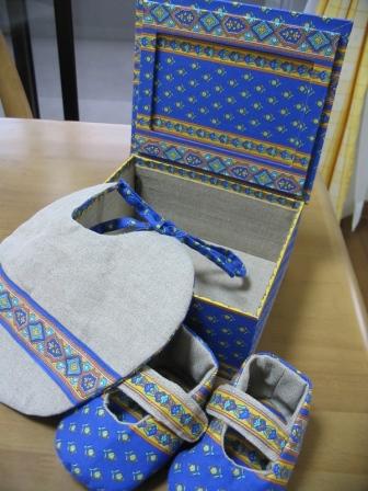 ”ベビーBOXは息子のために「ゲンキな夏生まれの男の子」をイメージで南仏プロヴァンス製の布とリネンをチョイスして作ってもらいました。”