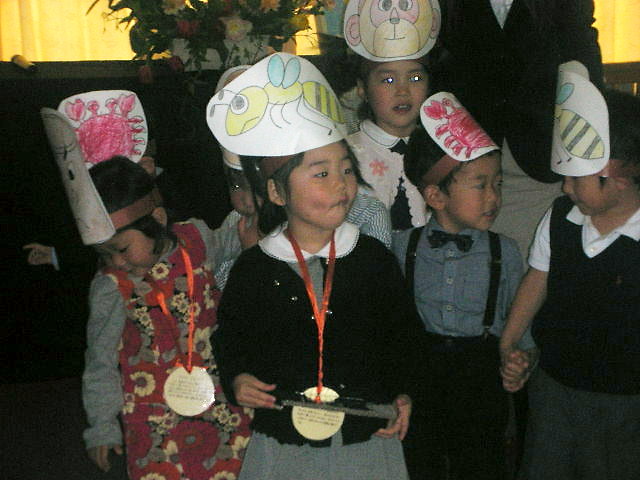今日は、サエコのおひさま保育園の卒園式でした。せっかくの晴れ姿も、ベビー連れ、パパ無し(仕事休んでくれず)だとビデオ・デジカメ・携帯を撮るのが大変で結局、きれいな写真はありませんでした・・・とほっ。泣く余裕もなかったよ~。涙腺弱ってるはずなのに。あ、でも”夢わかば”というお歌はぐらっと来ました。小さな小さな夢の種たくさん栄養吸い込んで・・・と始まり、さびは、僕らは~生まれて~よかったよ~ 僕らを産んでくれてありがとう・・・・・というもの。確かに、サエコは口ずさんでいましたが僕らを「くんで」くれて、ありがとうって歌っていたから葉っぱと、お水の話と思っていたのに、産んでくれてありがとう、だってほんとだよ。痛かったよ~でも、こちらこそ、親にしてくれてありがとう。と、思ったのでした。毎日の生意気盛りに、すっかり感謝の気持ちを忘れてましたよママは。普通なら怒られないで済むことまで怒られてしまうアトピッ子。「(薬つける時)動くな~」「(カキカキして~)かいちゃダメよ!」など本当に気の毒です。生まれてよかった。思春期になっても変わらず思われるような子育てをせねばなりませんね。 アトピー、見た目では分からないほどきれいになりました。