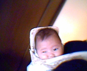 そこでおんぶ紐に挑戦してみました。まだ2ヶ月だけど、首も据わりかかってるしいいかな~と思って。