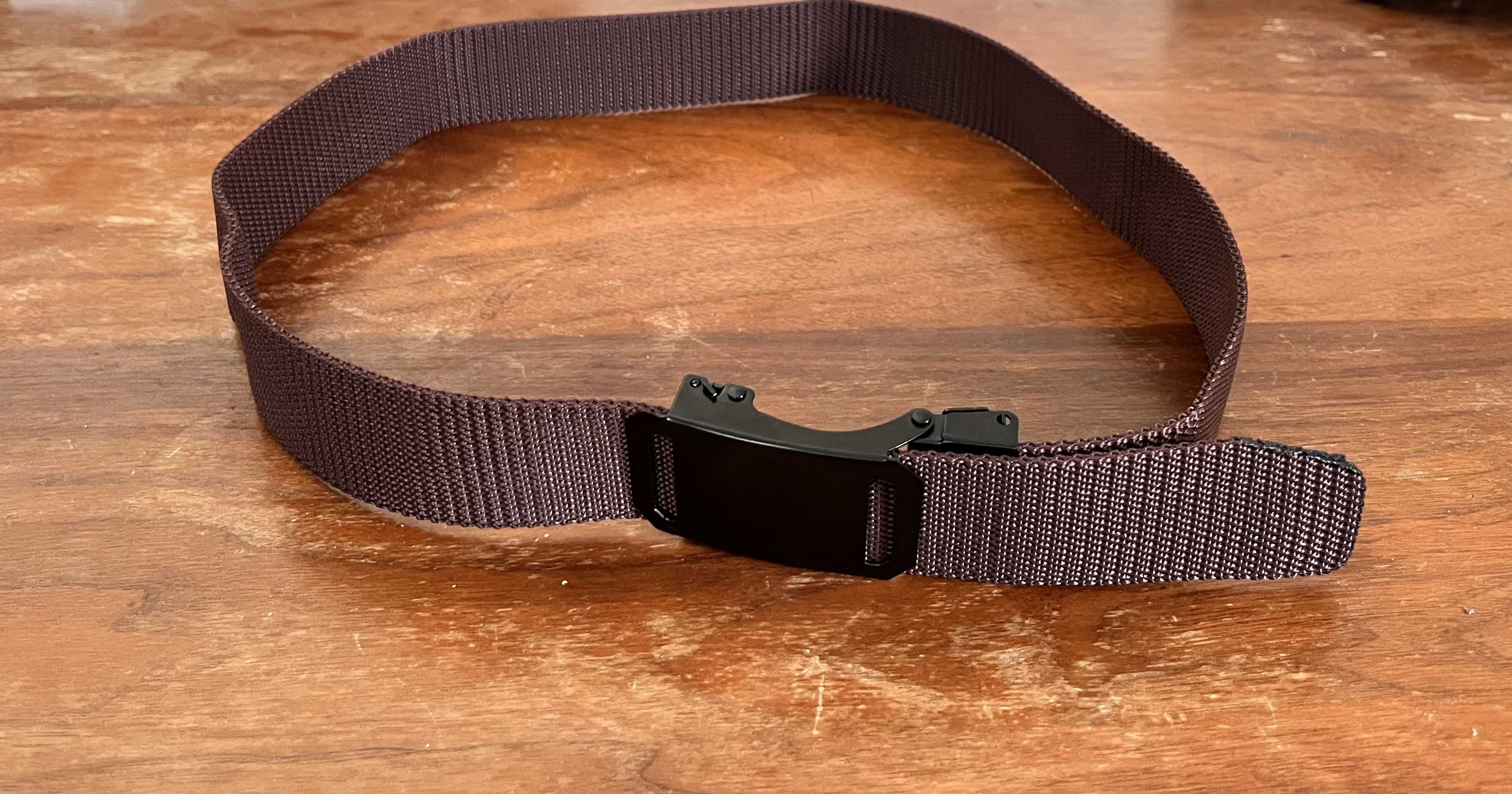 こんにちは!いつも訪問頂き有難うございます。仕事でカーゴパンツや作業ズボンを履いていますがこの暑さで腰回りも結構汗で濡れてしまいます。これまでは立派な革ベルトをしてました。と言ってもAmazonで990円でしたけどね(笑)丈夫な革ベルトですので本来ジーンズ用でもいける材質ですのでちょっと勿体無いかと思い今回作業用に汗に濡れてもいいようにナイロン製のベルトを買いました。こんな感じ。アップで見ますとバックルは金属でベルトはご覧のナイロンです。380円です!いかがでしょうか?百均のものよりは数段立派だと思います。では実際に腰に巻いてみましょう!おっ🙄意外とカッコいい!この下の小さなレバーがストッパーでして、これを引きながらベルトを出し入れするという長年生きてきて初めての仕組みです。まあシンプルな構造ですので長持ちしそうです。最後まで読んで頂き有難うございます。このブログはにほんブログ村の人気ランキングに参加しています。よろしければポチっとお願いしますね! ↓にほんブログ村にほんブログ村にほんブログ村