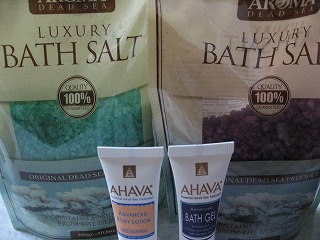 旦那さんに欲しい土産リストをあげておいたわけですが、いつもかなりドキドキです(´ー`)というのも、旦那さんに「こんな感じで...」と曖昧に頼むと変なものを買ってきてしまうのです...(´ー`;;;で、今回のお土産はというと...。・死海のバスソルト2種&ホテルのアメニティでおいてあったAHAVAのクリーム。AHAVAはイスラエルの死海の塩や泥を使った製品を作ってる有名なブランドです。ヘブライ語で”愛”という意味らしい。死海のバスソルトは頼んだものがバッチリやってきた!ヽ(´▽`)ノ・スーク(市場)で買った、ピアスとネックレスのセット。数百円だったそうです(汗)これは旦那さん判断で買ってきたもの。気持ちは嬉しかったのですが、パッと見からして安いのがわかるのが微妙(´ー`;;・イスラエルの世界的デザイナー、ミハエル・ネグリンのピアス。色は紫。ピンクかブルーあたりと色の指定をしていたのに、なぜ紫?旦那さんに聞いたら、「混ぜたらその色じゃん!」え、そういう問題??(゜ロ゜)日本で買うよりすごい安かったみたいで、もっと買ってきて欲しかったーー!!(>_<)でも、頑張って空港で店を探して、なんとかGETした努力は買いたいと思う...。・ヘブライ語のロゴTシャツが欲しいと頼んだら、コカコーラの赤いTシャツがやってきた。は、派手!!Σ( ̄Д ̄;) しかも可愛いのが良いって言ったのに..._| ̄|...○「夏に着ようと思ってたんだけど、これ隣で着てたらどう思う?」と聞いたら「50m離れる(・∀・)キャハ」とのこと。そんなTシャツ買ってくんなー!ヽ(`Д´)ノ(笑) 「捨てていいよー」と言うけど、それなら最初から買ってこなきゃいいのに( ⊃Д`)ちなみに自分の土産は一つも買ってこなかったそうで、お菓子も来なかった。ってな具合でした。ちゃんちゃん。↓コレのもっとシンプルっぽい感じのデザインでした。↓死海の水はカリウムが多い、と今日読んだVOGUEに書かれていた。 ってことはむくみに良いんですね。フム。