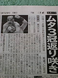 昨日の全日本プロレス 横浜大会で行われた3冠ヘビー級選手権試合諏訪魔(王者)vsグレート・ムタ試合結果は武藤敬司本人のIWGPと合わせて4冠王者になりましたそう言えば、武藤敬司は素顔での試合とグレート・ムタでの試合を分けていますが新日本プロレス所属だった14年前の試合で天龍源一郎の『ムタで来い、ムタで』の挑発で試合途中なのにグレート・ムタに変身してしまった事が一度だけありました。