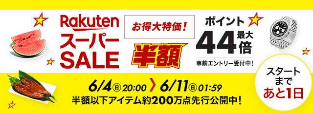おはようございます。今日も私のブログを見に来ていただきありがとうございます。さあ!いよいよ6月のスーパーセールも後半戦。我が家は夏休みに向けて冷凍食品とか、冷凍食品とか……冷凍…とか…その辺をガッツリ買い込みたいと思います!(配達日最大限後ろに設定作戦w)お得に買い回るためのおススメは、今回絶対買うぞ!と決めているものがあったらそのお店のメルマガを申し込んでおくこと。メルマガ限定クーポンが貰えたりするのでお得です。あと買い物カゴに入れておくと値下がりした時ポイントアップした時クーポンが出た時など、通知が来るので便利です。スーパーセールではクーポンはどんどんなくなってしまうので、とにかく早めに買い回る!のがおすすめです。今回もお得情報まとめてみましたので参考になれば。※この記事は情報が入り次第追記していきます。6/10関連を前出ししました。↓毎回エントリーが必要です↓爆速でなくなるクーポン(6/10)↓6/10限定 抽選で最大100%バック↓10日0:00〜23:59ポイント10倍↓10日20:00〜23:59ポイント10倍↓同一店舗内買い周りでポイント最大+9倍(6/10)↓SuperSportsXEBIOのポイントアップイベント(6/10)アディダス商品が対象なのでシャツや靴下を買うといいかも。なんとアディダス商品に使える20%offクーポンあり!↓さらにゼビオグループの買い回りイベントまで!(6/10)↓スーパーDEALイベント一つ追加です↓8日18時からクーポン追加きました!☆クーポン系☆↓キリンのクーポン2つ抜けてました!↓こちらはお酒ね↓ブルーノのクーポンもあったよー( ;∀;)↓先着20,000枚限定クーポン↓SS×父の日クーポン↓グルメ・酒クーポン↓何度でも使える最大2,000円offクーポン↓家電に使えるクーポン↓対象アイテム半額クーポン↓楽天ファッション最大2,500円offクーポン↓コスメに使えるクーポン↓クーポン利用で10人に1人ポイント当たる↓くらしにプラス↓お中元・夏ギフトクーポン↓父の日特集クーポン↓旨い夏特集クーポン↓暑さ対策特集クーポン↓スイムウェアクーポン↓夏のファッションに使えるクーポン↓みんなの欲しいをみんなでつくる!↓ドナルドダックハッピーバースデークーポン↓楽天海外通販クーポン↓brand beauty300円offクーポン↓楽天ベストコスメクーポンラロッシュポゼでも使えます。↓カナダフェアクーポンこのオーガニックジュースが気になってます。↓人気アイテム2個以上購入で10%off↓炭酸水やお茶、ソフトドリンクに使えるクーポン↓サントリー飲料500円off↓アクエリアス10%offクーポン↓ジョージア製品に使えるクーポン↓コカコーラ社製品10%off↓やかんの麦茶10%offクーポン↓綾鷹10%offクーポン↓UCC商品15%offクーポン↓UCCはこちらもあるので購入前にエントリー!↓ビール、酎ハイ、新ジャンルなどで使えるクーポン↓父の日ビールクーポン(エビス)↓サントリーの父の日ギフトに使えるクーポン↓アサヒの父の日ギフトに使えるクーポン父の日のプレゼント、この辺がお手頃で良さそうだなあ。花束が飛び出すパッケージも素敵だしエビスの特別感も捨て難い…(ー ー;)↓アンケート回答でサッポロの人気商品に使えるクーポン↓アサヒビールの新ジャンルに使える500円offクーポン↓サントリーのビール・酎ハイに使えるクーポン↓大人気酎ハイで使えるクーポン↓初のコカコーラ配合のお酒10%offクーポン↓楽天24の対象商品20%offクーポン↓おうちで機種変↓SuperSportsXEBIOはクーポン祭り!同ページにKEENやNIKEで使えるクーポンもあります。ノースフェイスのこういうリュック、来年中学生の長男の通学バックに買おうかなあ。そもそもが他店よりお安いのにさらに10%offだなんて凄すぎる(・_・;☆エントリー系☆↓エントリーでポイント10倍↓エントリーでポイント5倍↓エントリーでポイント7倍↓エントリーでポイント10倍↓エントリーでポイント5倍↓39ショップポイント2倍↓エントリー&お気に入り登録でクーポン↓エントリー&1,000円以上購入で200ポイント↓父の日ギフト4,000円以上購入で5,000ポイント当たる↓ロングセラー夏服ポイント最大10倍↓ママ割メンバーポイント2倍↓ママ割メンバーポイントアップ7日10:00〜8日9:59。6月分のエントリーを忘れずにー。↓夏準備応援フェア↓楽天モバイル契約者は楽天ビックで30,000円以上購入で500ポイント↓ママ割メンバー楽天ビックポイント最大5倍↓マイカー割×スーパーセール↓楽天24P&G得トクキャンペーン↓ライオンA・B両群から購入で200ポイント↓エントリー&10,000円以上購入で300ポイント↓コカコーラ社製品スタンプラリー我が家で常備のラベルレス製品も対象。 まとめて買ってそこから使っていけば災害対策のローリングストックにもなり安心です。↓ネスカフェ商品ポイント10倍↓同一店舗内買い周りでポイント最大+9倍↓同一店舗内買い周りでポイント最大+9倍↓またまたこのイベントあります↓こっちもあるね。定番になるのかな?↓ 楽天ブックスで700円以上購入&対象のコカコーラ商品1,800円以上購入で500ポイント1,800円購