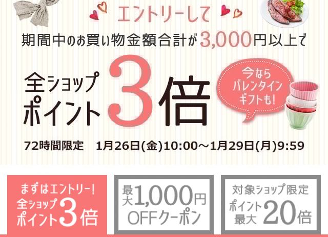 楽天では税込3,000円以上のお買い物がポイント3倍になるというイベントも開催中です。