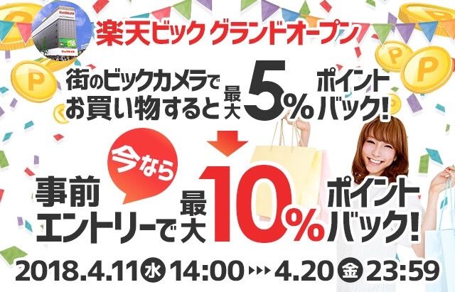 ↓エントリーしてビックカメラの実店舗での買い物で楽天カードを提示すると10%ポイントバック